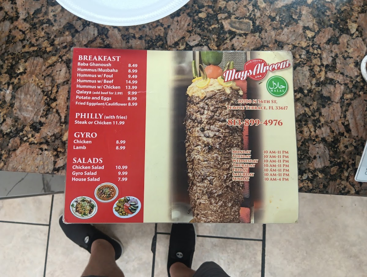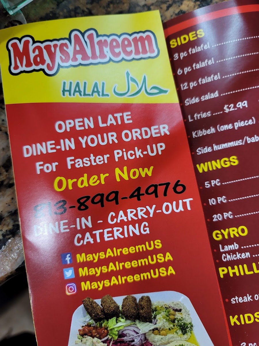 Welcome to Mays Alreem USA Pita House, a delightful gem nestled in Temple Terrace, FL. This Middle Eastern restaurant is a must-visit for anyone craving authentic flavors and hearty meals. The menu offers a variety of pitas that are sure to tantalize your taste buds, from the tender Beef Shawarma Pita to the crispy Falafel Pita, each beautifully wrapped in soft, warm pita. You’ll also find mouthwatering side dishes like their creamy Hummus and a refreshing Turkish Salad.